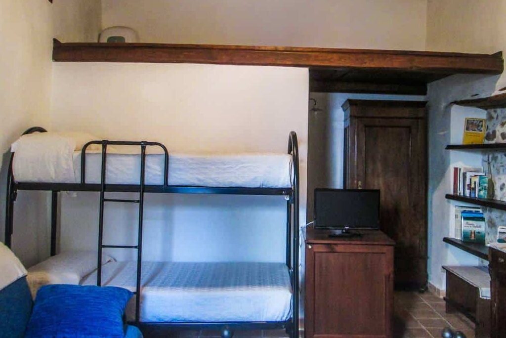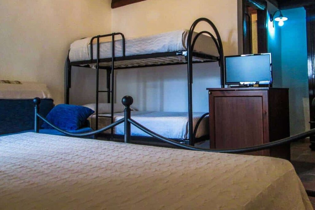 Camera quadrupla disponibile con letto matrimoniale ed un letto a castello con due posti disponibili.